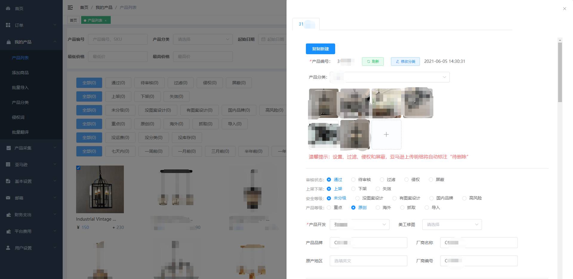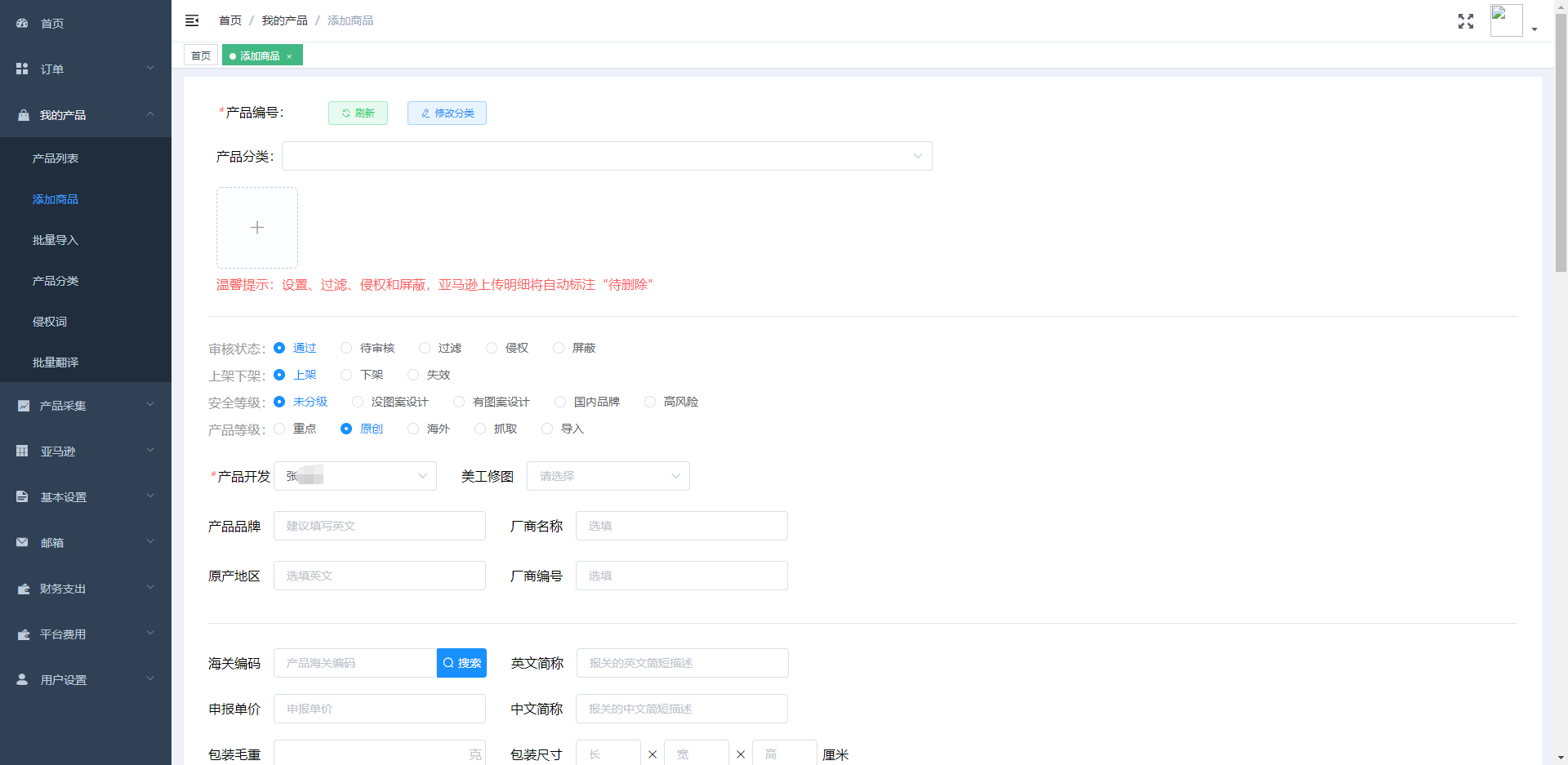 - 需要注意此处的“产品分类“是公司内部的分类,上架亚马逊前一定要再检查亚马逊平台的官方分类。