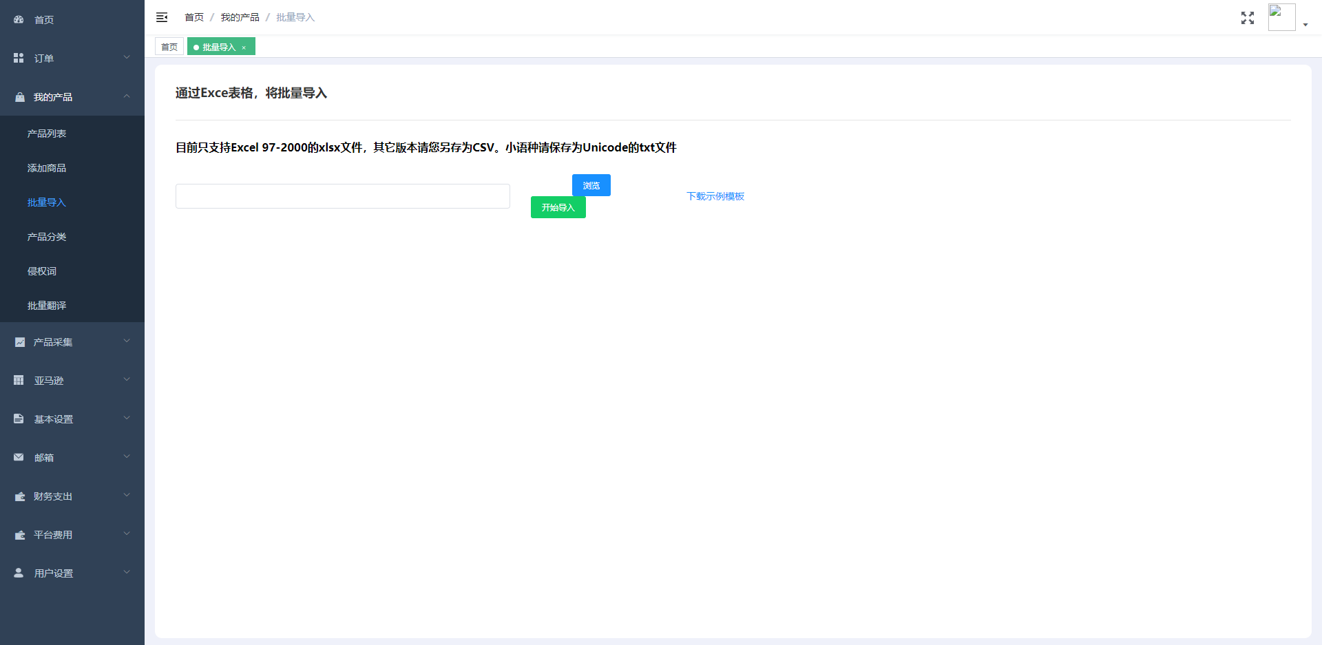 所添加的商品会进入到产品列表,也就是公司的产品库内,入库精确到个人,可以一键导入店铺(需通过审核)。