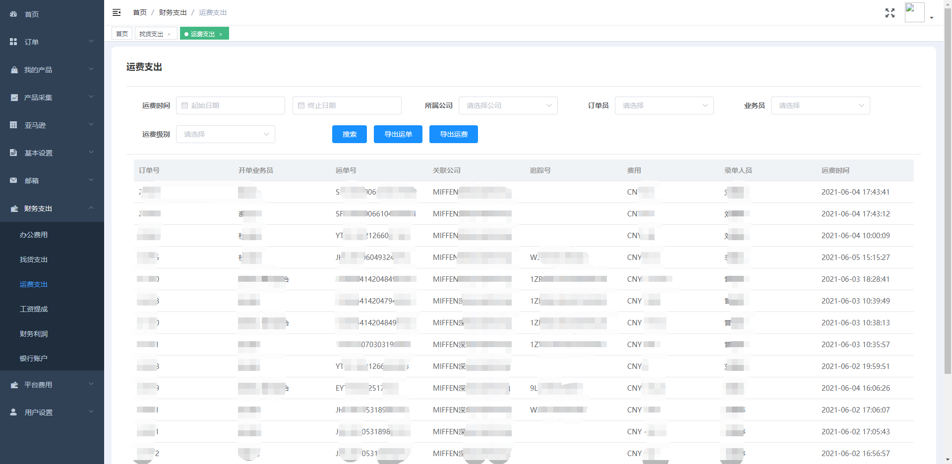 【运费支出】
