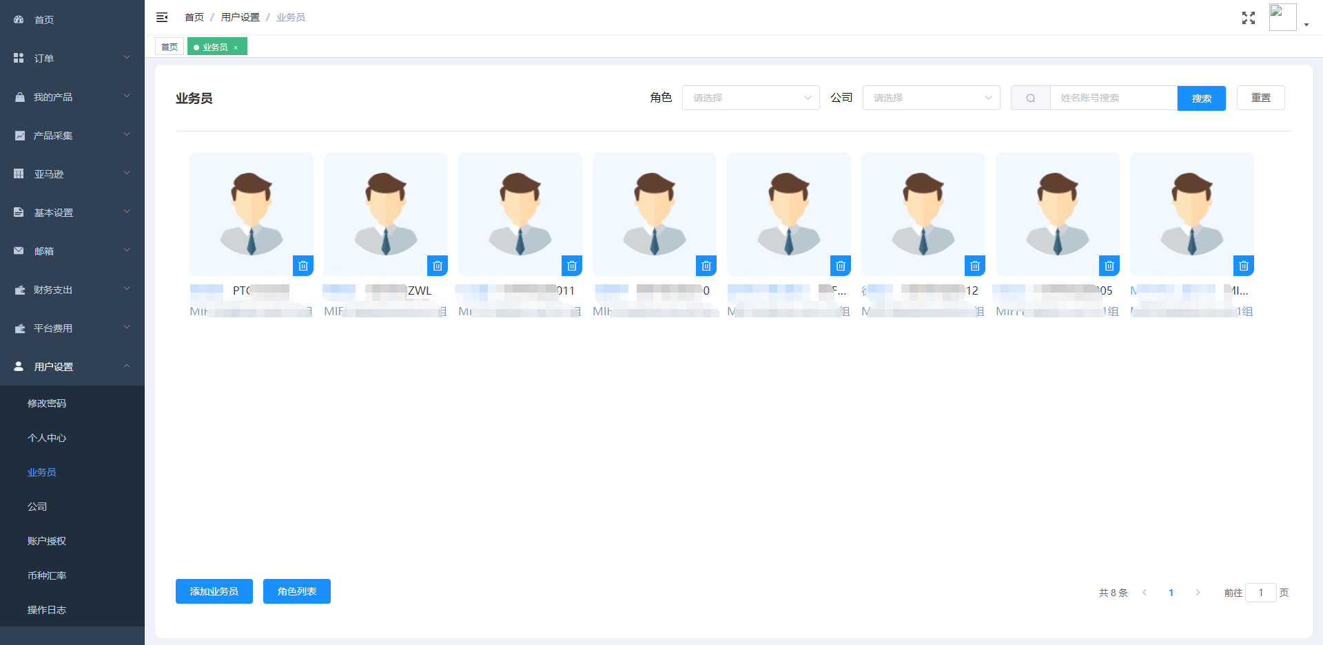 所有业务员,均可分配不同的管理权限,对应不同的功能模块。