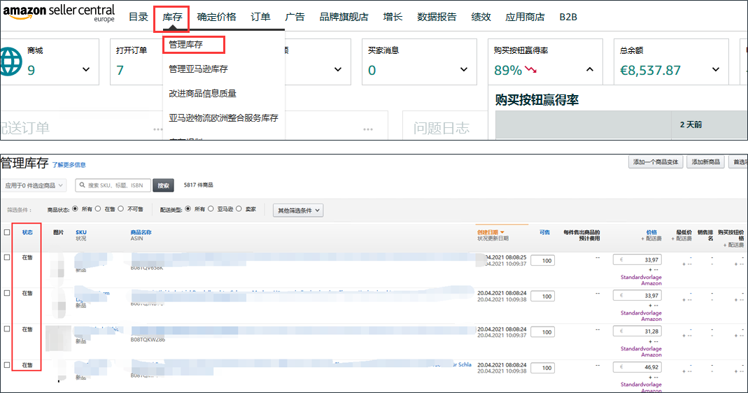 此操作是将产品库内上传到亚马逊店铺的操作,上传店铺后,售卖才开始进行;